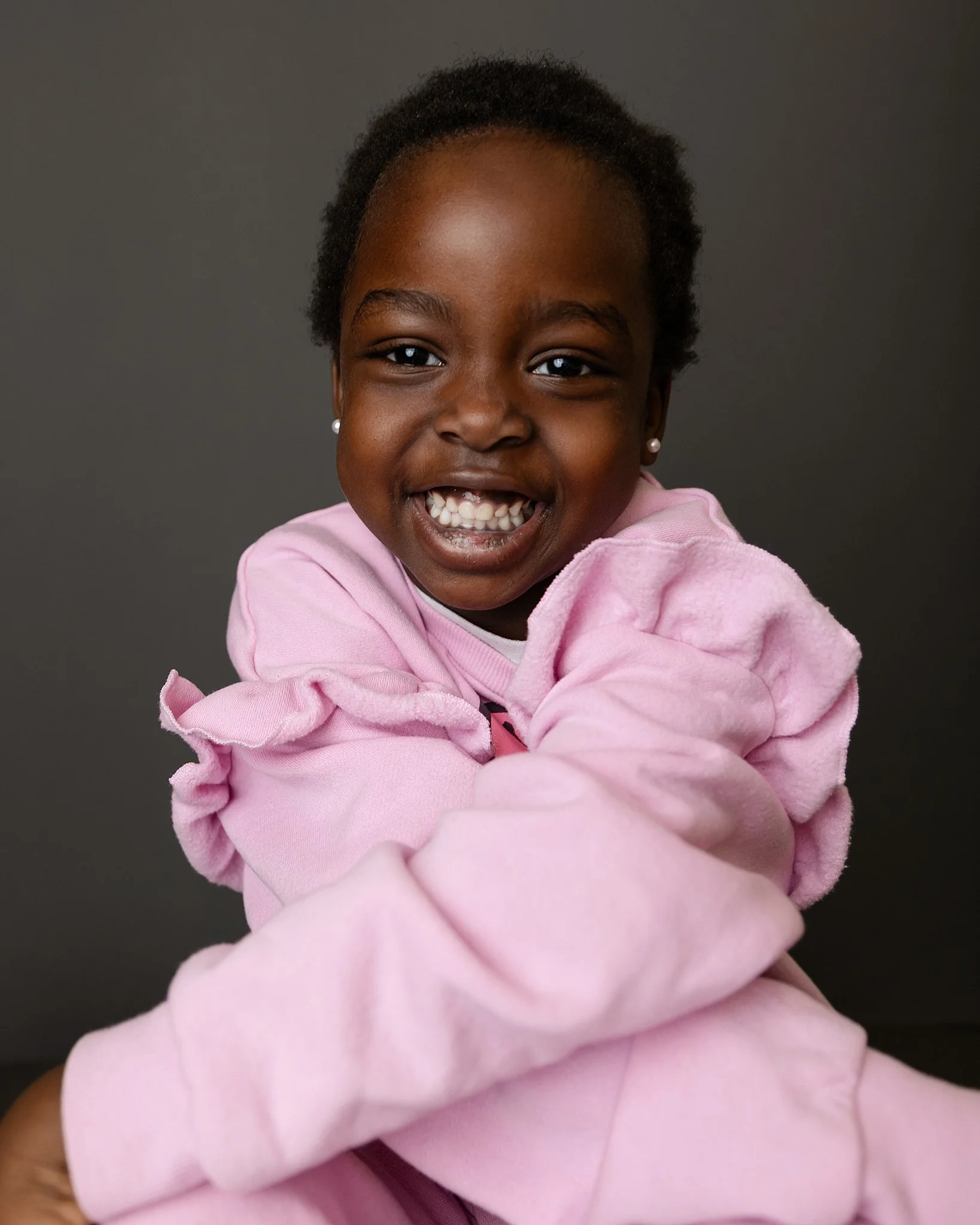 I hardly ever ask kids to smile, because asking them to “sit still and smile” doesn’t give them a chance to feel safe and seen. But chatting about their favorite colors and animals, throwing a ball back and forth, and letting them give high fives to my dinosaur stuffie… that gives them space to have fun, not worry about the camera, and just be themselves…and in the midst of all that, I get to capture genuine images, full of personality, for parents to cherish for a lifetime.